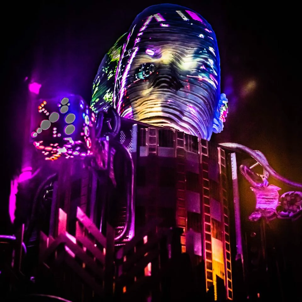 The Human Avatar Booth (HAB) is the visual centerpiece of the project. Towering up at 26' in the air and capped with a 5' two-faced sculptural human head, the full-scale booth is eye-popping and contains everything needed to run all 4 of our interactive multi-media games.