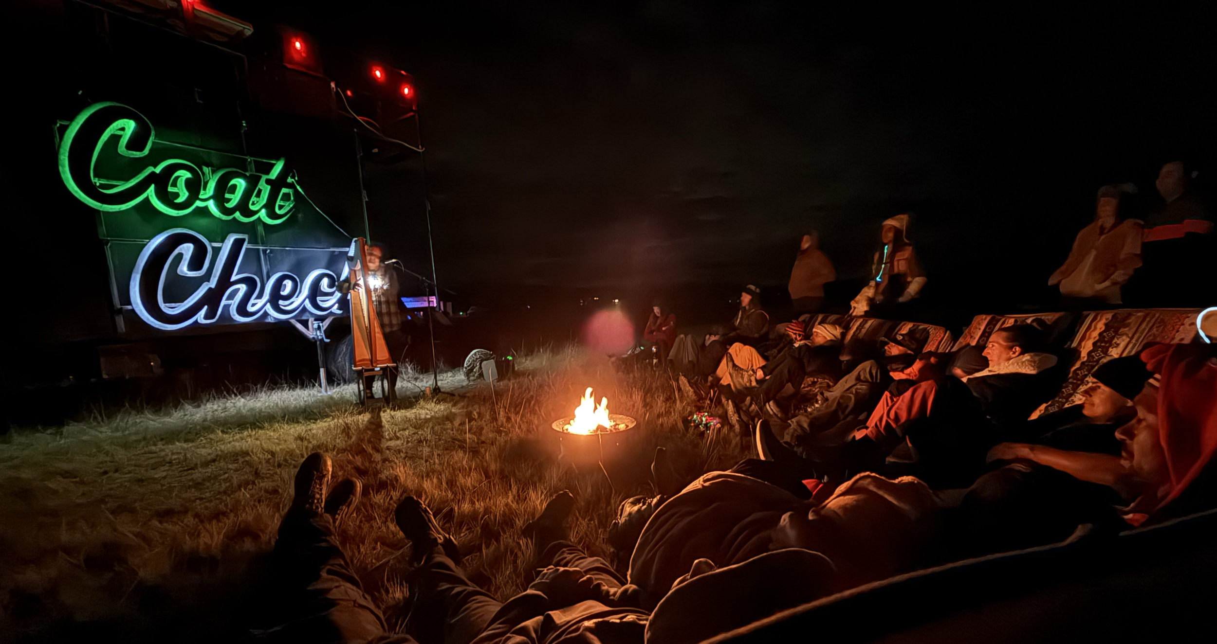 Gillian playing the Harp in front of Coat Check at Afterburn 2025 - 10.2.2025